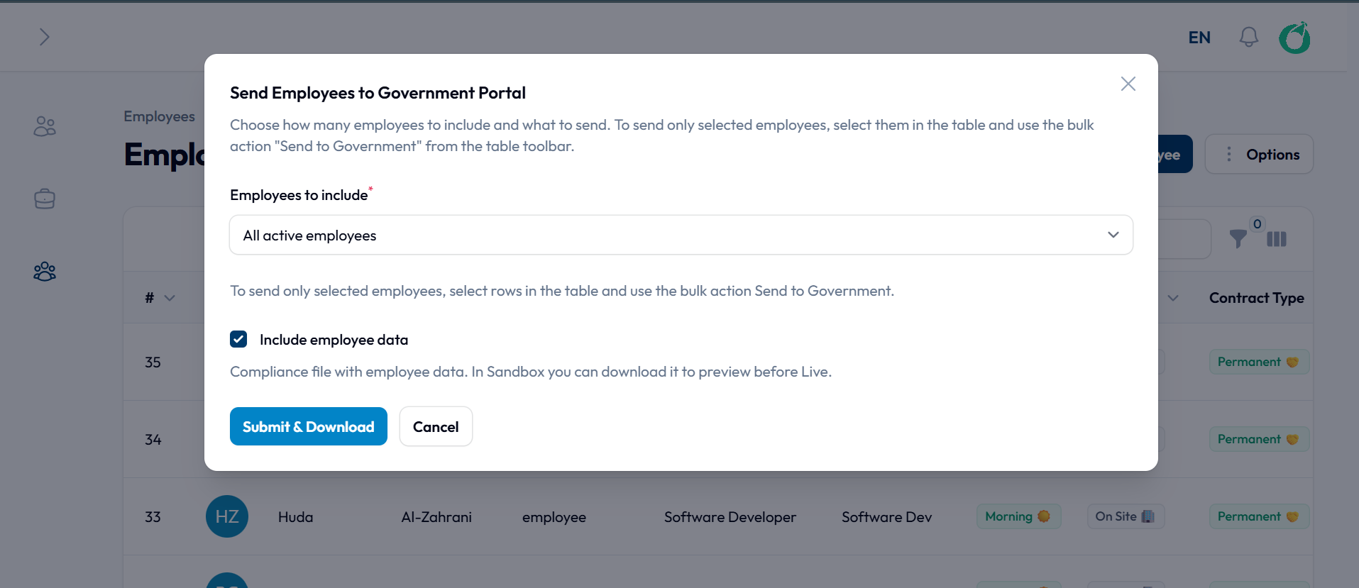Smart HR’s government integration connects your HR data with official systems so you can meet regulatory requirements without manual work or separate tools.